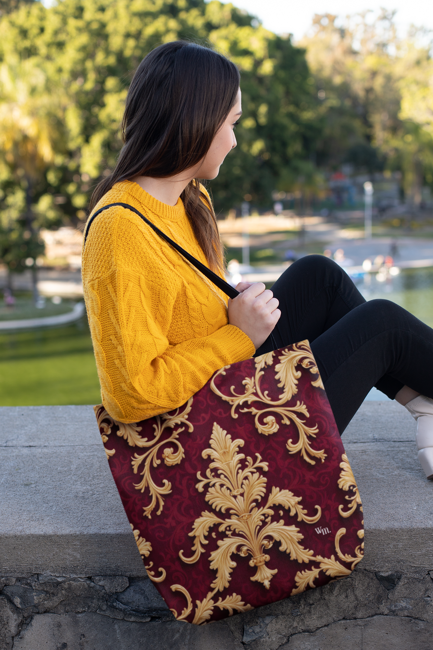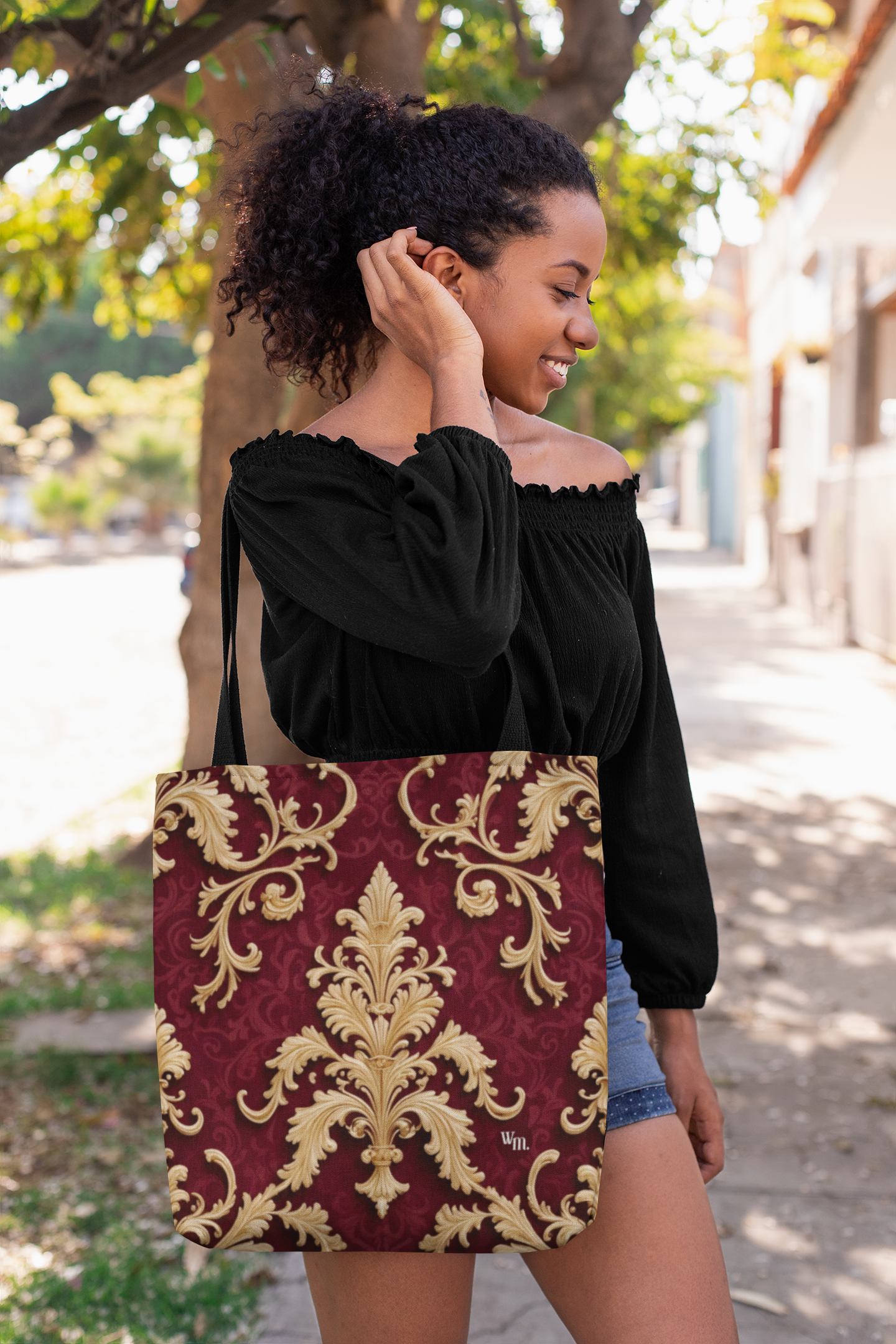Step into the grandeur of the Italian Renaissance with this Florentine-inspired tote bag, featuring intricate burgundy and gold patterns reminiscent of historic Florence’s art and architecture. Perfect for lovers of classic European design, this tote blends heritage craftsmanship with modern-day versatility.