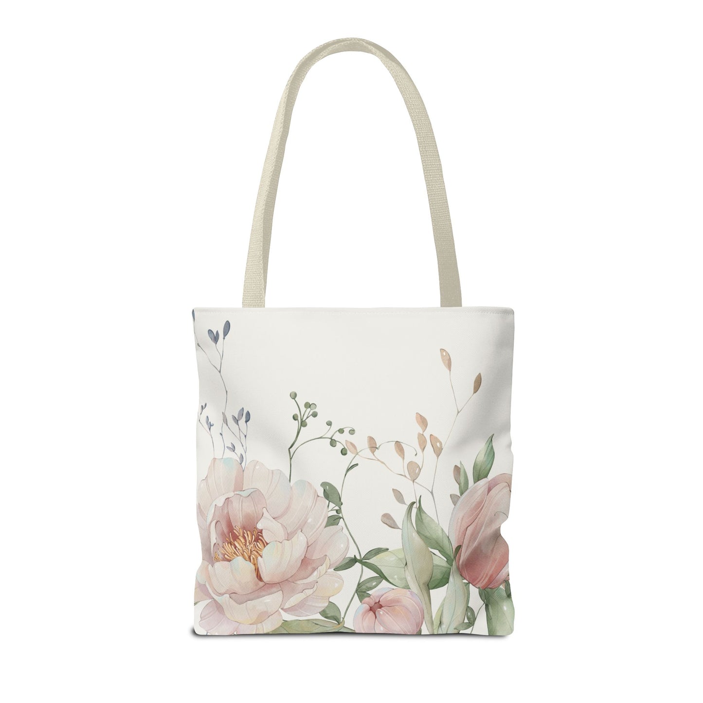 Whether you're heading to the grocery store, the beach, picnics, or out for a walk, this durable tote bag is designed to meet your everyday needs with style and functionality. The soft colors of this floral design make this tote bag a delightful accessory.
