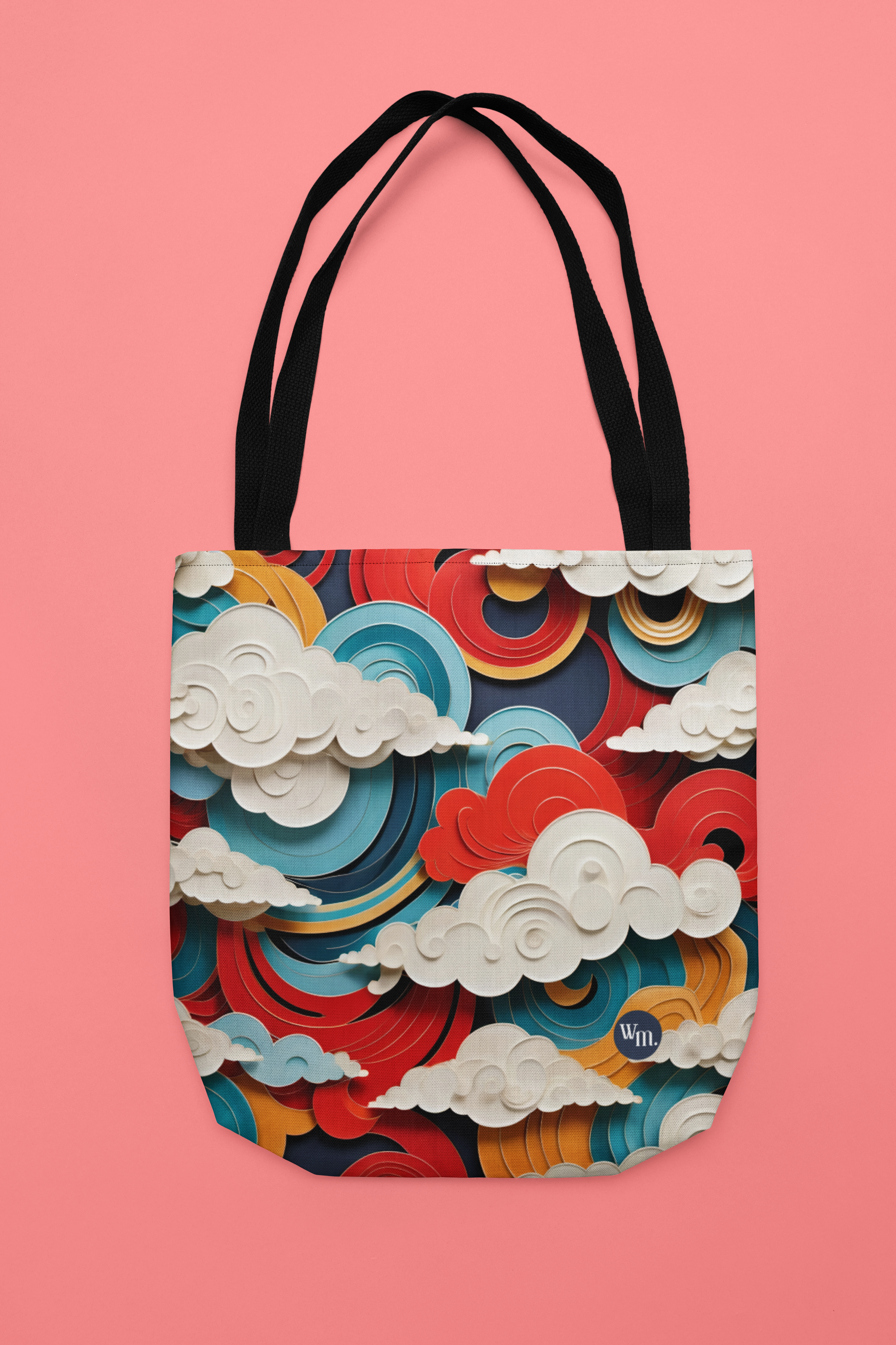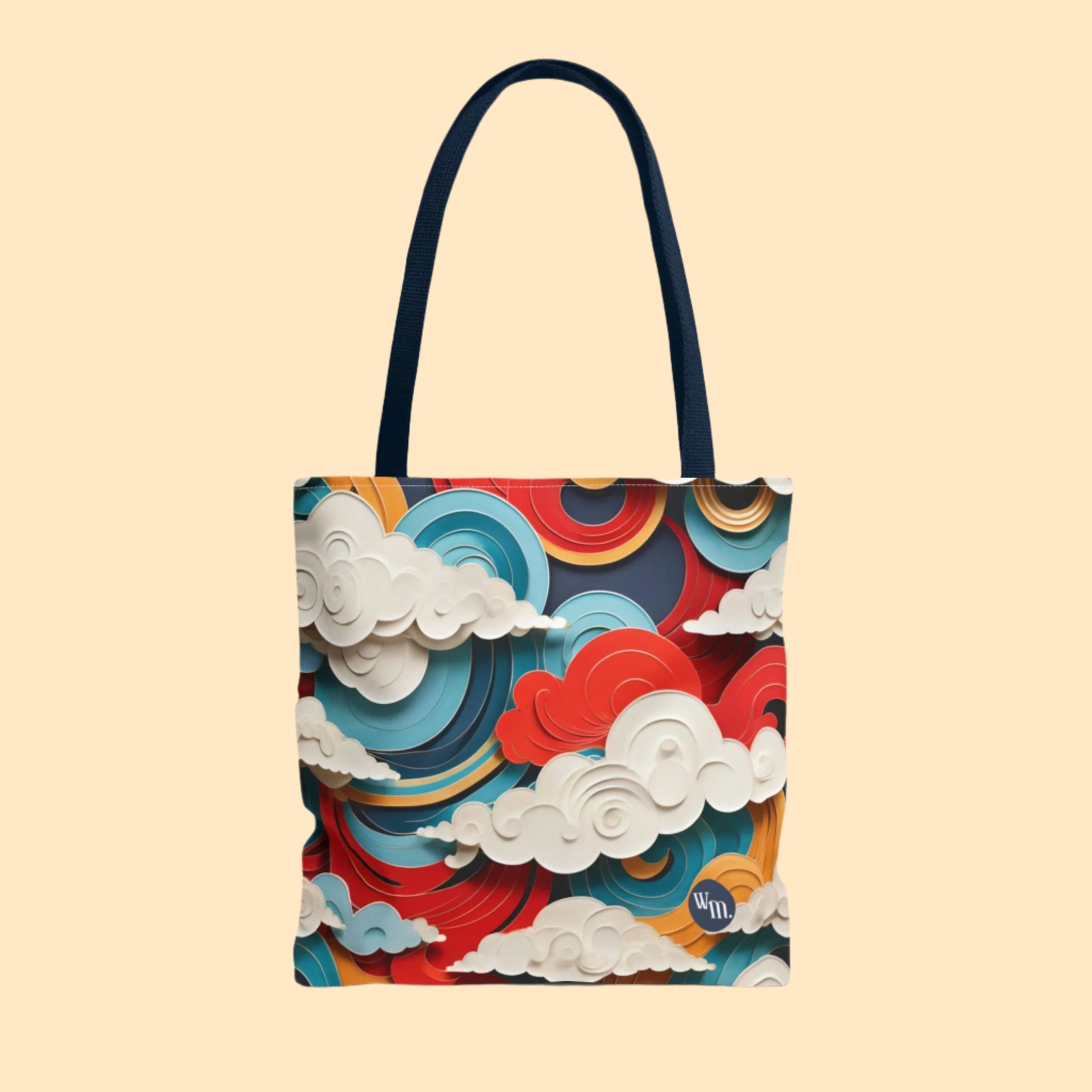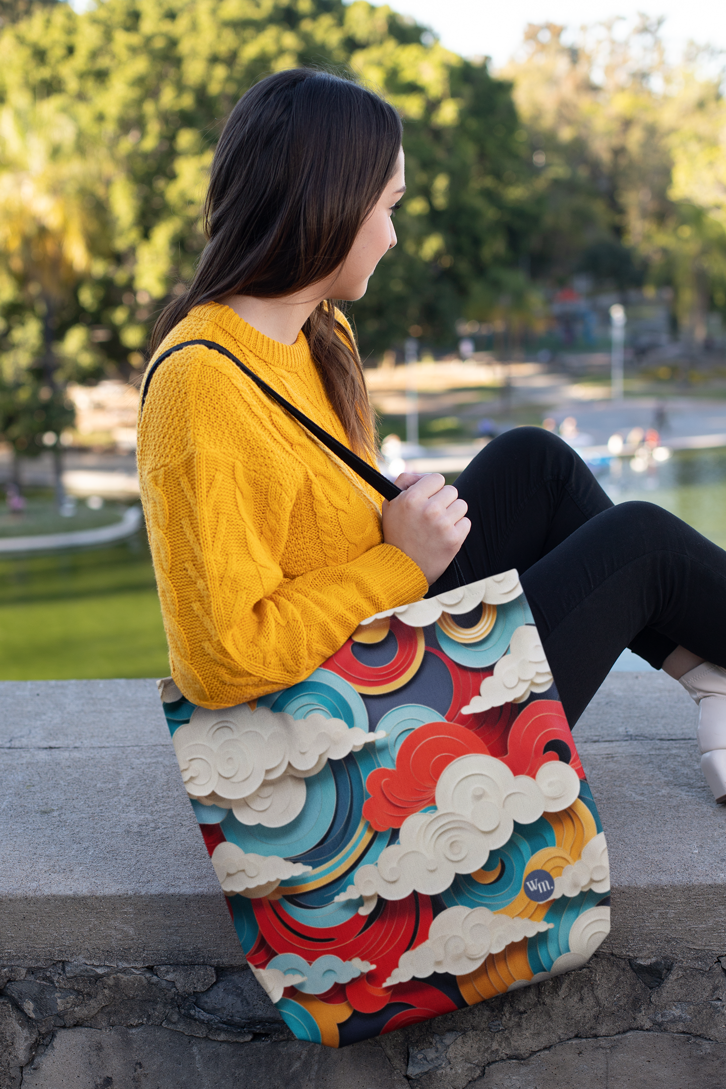 A striking blend of ancient symbolism and modern aesthetics, this tote features a reimagined yunwen cloud motif with bold, dynamic swirls in a contemporary color palette. Inspired by centuries-old Chinese cloud patterns, this fresh design reflects movement, prosperity, and boundless energy, making it the perfect statement piece for creatives, travelers, and culture lovers.