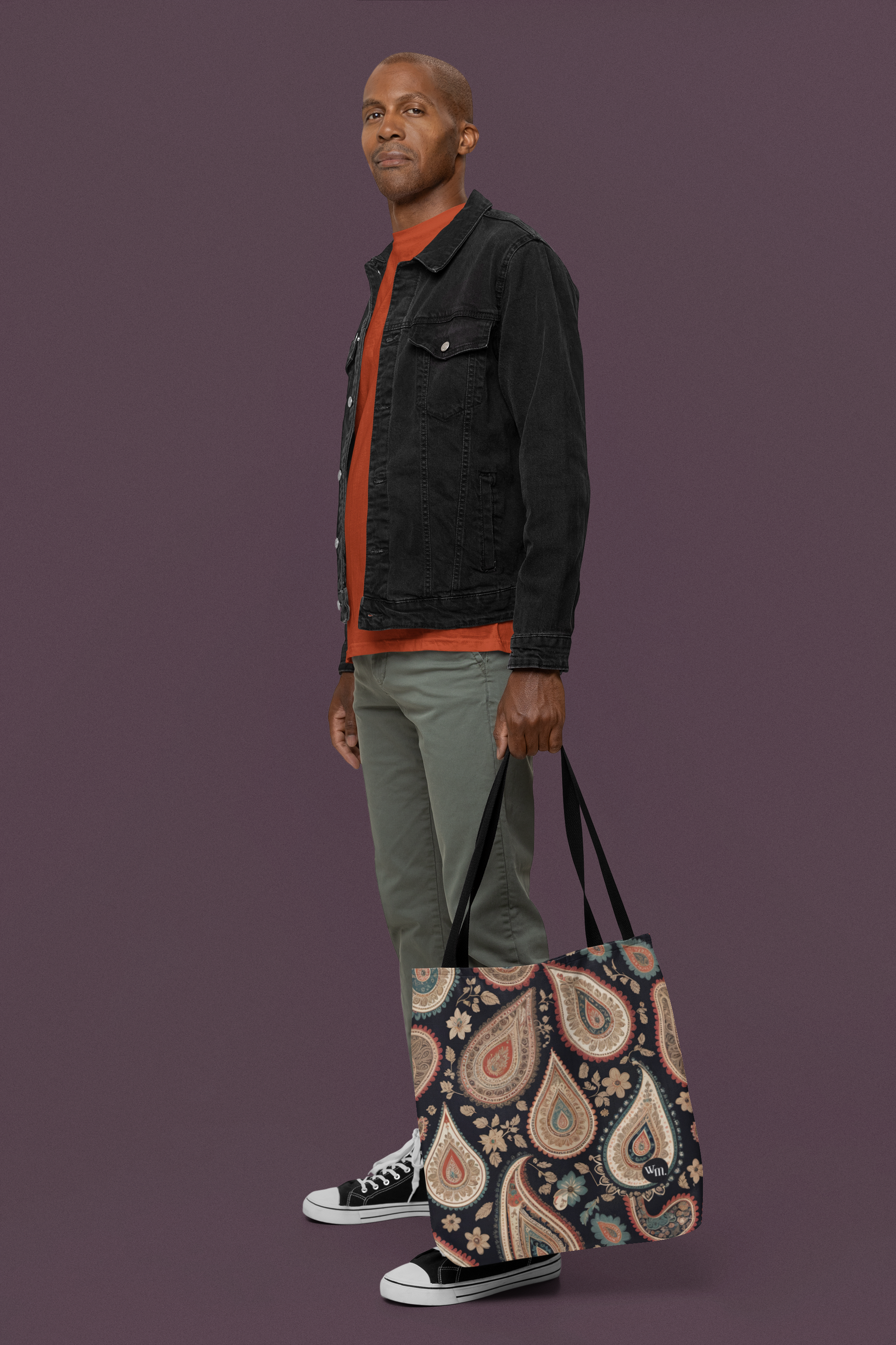Step into a world of timeless elegance with the Paisley Dreams Tote, featuring a sophisticated beige and sage paisley motif over a deep blue background. Inspired by the intricate patterns of Indian textile heritage, this tote blends classic artistry with everyday versatility. Crafted from durable polyester fabric, it’s perfect for daily errands, work, or travel. With reinforced handles and a spacious interior, it’s as functional as it is stylish. Elevate your accessories collection with this chic and globally inspired tote!