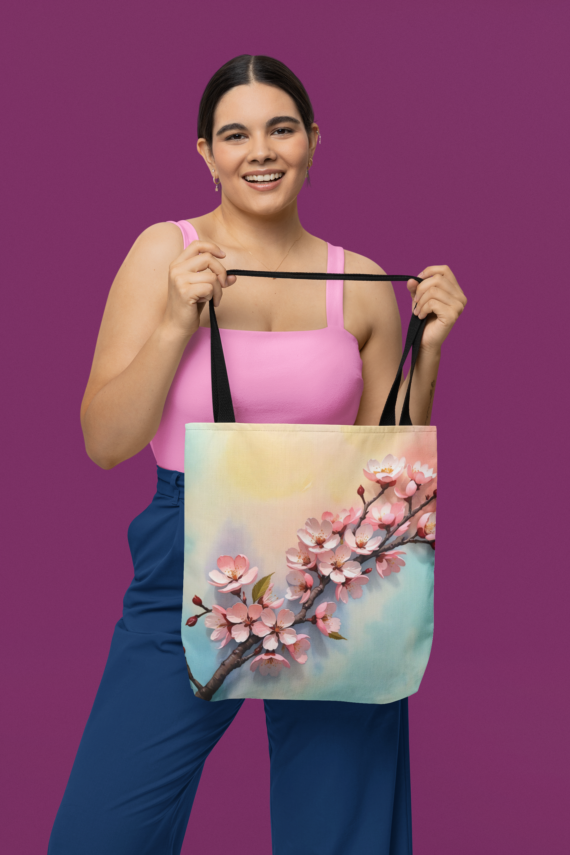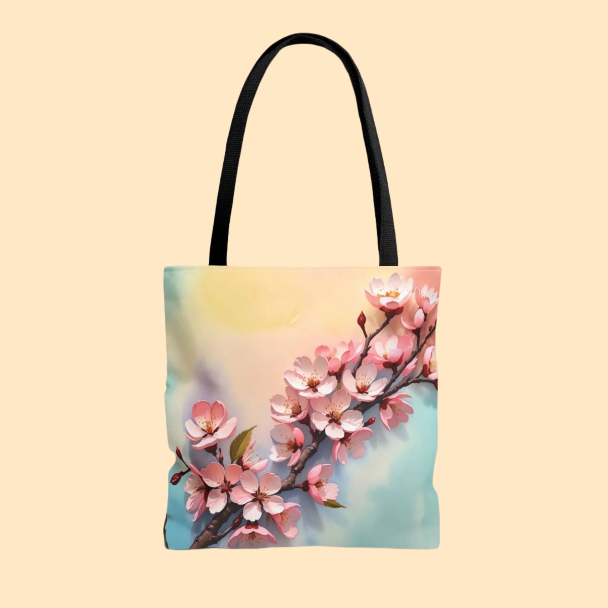 A fusion of soft pastel hues and delicate cherry blossoms, this tote captures the essence of spring in Japan. The soothing rainbow watercolor background enhances the beauty of sakura petals, making this bag a poetic tribute to nature's fleeting elegance. Durable yet lightweight, it’s perfect for daily adventures and travel lovers.